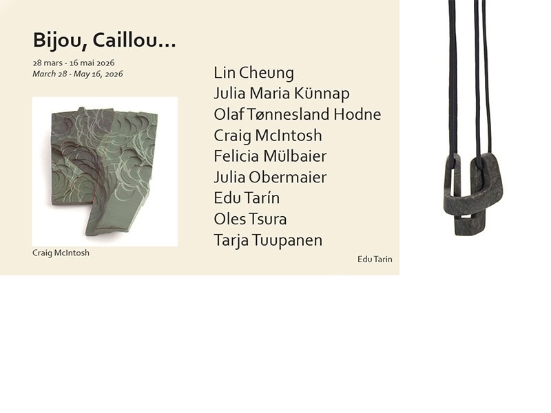 The show brings together nine international artists—Lin Cheung , Julia Maria Künnap, Craig McIntosh , Felicia Mülbaier, Julia Obermaier, Edu Tarin, Olaf Tønnesland Hodne, Oles Tsura, and Tarja Tuupanen—who reveal the raw stone in all its power and delicacy. In their hands, the material awakens to reveal unexpected jewelry. This isn’t about stones cut for setting in precious metal, but about artists who draw from stone fascinating and spectacular jewels, through a combination of traditional and contemporary techniques. The stone is no longer a fragment serving metal but becomes both artwork and adornment. Through May 16, 2026. Info.