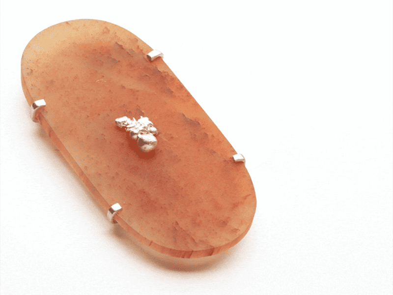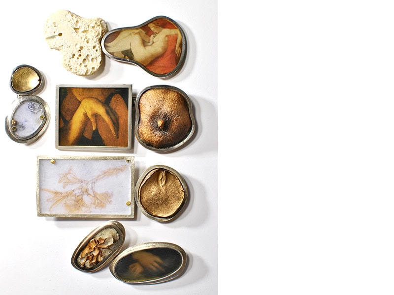 She has two pieces in the Lückenfüller exhibition, which features work by 30 Austrian artists and is on its third stop with a brand-new catalog and a talk at the Austrian Cultural Forum. “The spaces between earlier pieces become the material for the brooches Horizons—Lost Places,” states Hart. “The voids in these new pieces called for fillings or additions—a parallelogram and a circle outline a space of something that is no longer there or could possibly have been there.” More.