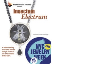 The Enamelist Society’s exhibition, held at Pratt Institute’s Steuben Gallery during NYCJW, explores the world of invertebrates through the lens of enameled jewelry. It celebrates the intricate beauty of insects, brought to life in stunning detail and craftsmanship. Viewers will be immersed in a vibrant fusion of science, nature, and design, where each piece invites closer inspection. More.