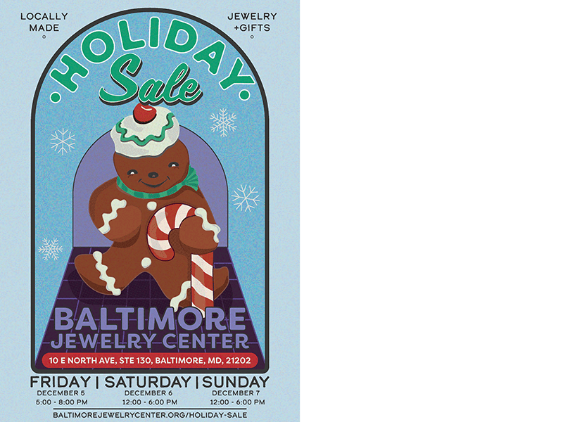Join the Baltimore Jewelry Center for its annual Holiday Sale, featuring work by 20 community members and instructors. Shop in-person from 5–8 p.m. on December 5; and from 12–6 p.m. on December 6 and 7. Select work from each artist will be available online. Info.
