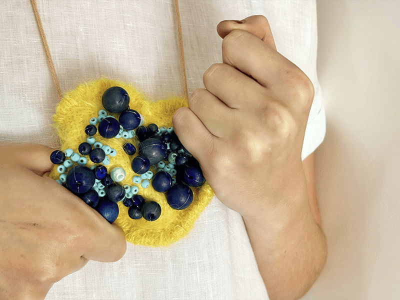 Luca Àdie, Bananarama, 2025, pendant in wood, paint, cord, photo: Mirei Takeuchi, edited by artistLUCA ÀDIE IS NOW AN AJF MAKER