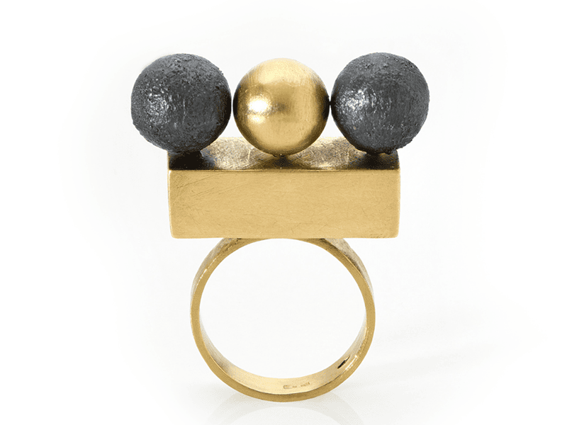 Gigi Mariani stands among the most internationally recognized figures in Italian contemporary jewelry, distinguished by a visual language that is immediately identifiable. His works carry a trademark tension between the primitive and the structured: a raw, almost archaic surface that envelops a rigorously defined and architectonic core. In Distanze, the textured, seemingly elemental exterior conceals and protects a precise internal structure, revealing the artist’s mastery of proportion and technical control. The work encapsulates Mariani’s signature aesthetic: a measured equilibrium between force and restraint, where raw and refined surfaces coexist in contrast and harmony. The result is a piece of striking presence, defined by structural clarity, high-quality realization, and a powerful, uncompromising beauty.