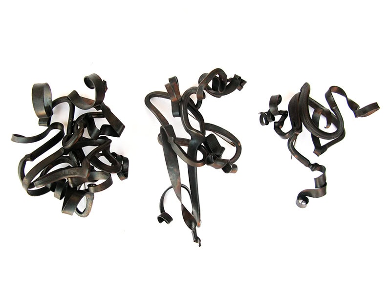 Dirty Dishes is a series of brooches and objects made from ready-made cutlery knives. Its aesthetics flirt with traditional baroque forge work. The found cutlery knives are cut open and twisted. The transformed knives are later soldered together to create patterns. The cobalt and nickel steel used in the old cutlery is very stiff and naturally forms symmetrical bends because of its properties.