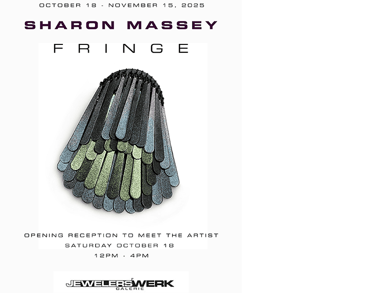 GALLERY Sharon Massey: Fringe, at Jewelers’Werk Galerie, Washington, DC, October 18–November 15, 2025. Opening reception October 18, 12–4 pm.